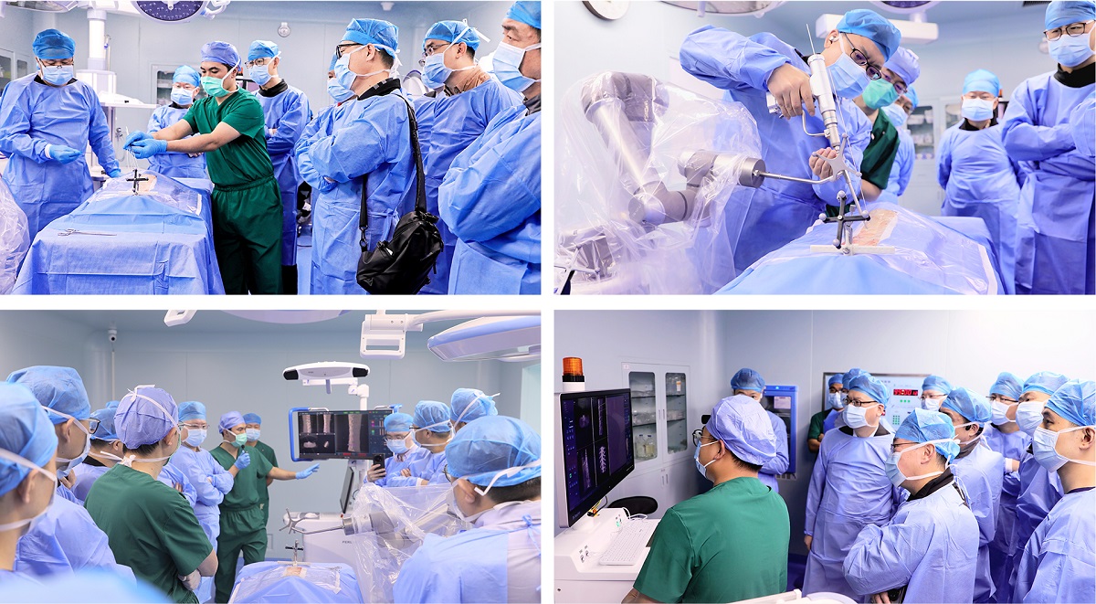 為了讓骨科手術(shù)機器人導航技術(shù)真正走進(jìn)各級醫療機構,普愛(ài)醫療特聯(lián)合天津市津益醫院開(kāi)設“骨科手術(shù)機器人臨床應用學(xué)習班”,構建起“科技助力+技能傳輸”的完整鏈路。學(xué)習班圍繞機器人實(shí)操,邀請江蘇省人民醫院骨科專(zhuān)家現場(chǎng)帶教,展示設備的全流程操作。來(lái)自全國各級醫療機構的百余名醫生參與了本次實(shí)操。